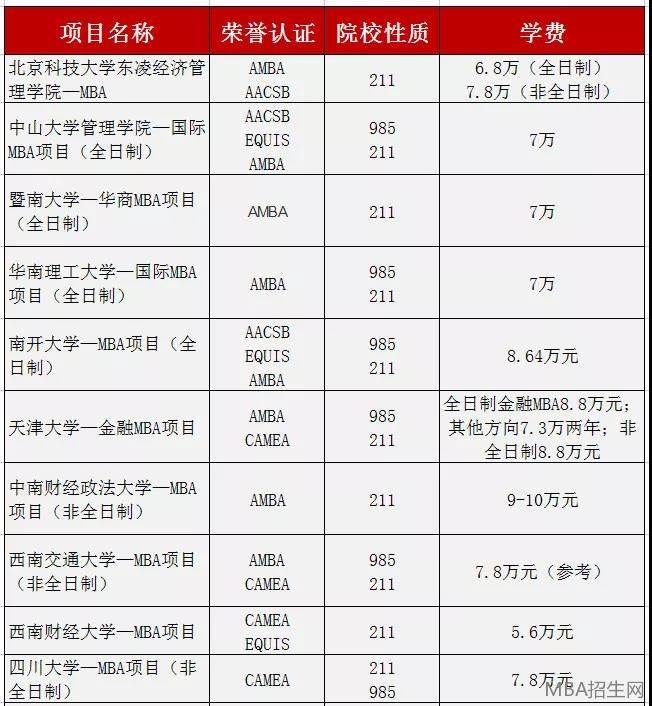 小編想在這里說句公道話,其實不是所有商學院都那么“高冷”,也有很多獲得國際認證、且自身是211/985的商學院,其MBA項目學費不高!