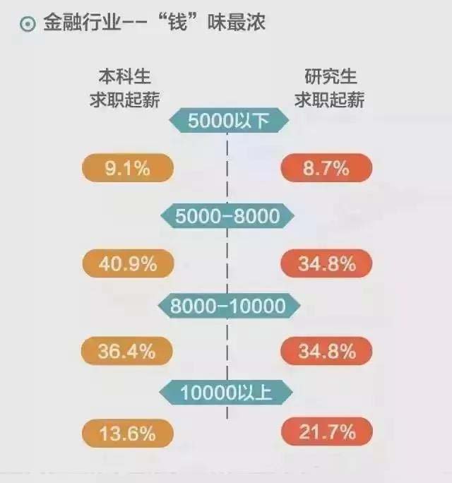 分析:金融專業本科和碩士的起薪都在5000-10000之間,本碩學歷對這個行業薪資的影響似乎并不是很大。因此,金融專業薪資可能更看重其他方面的差別而不是本碩的差別,讀研在某種程度上來說確實不能帶來薪資的巨幅提高。