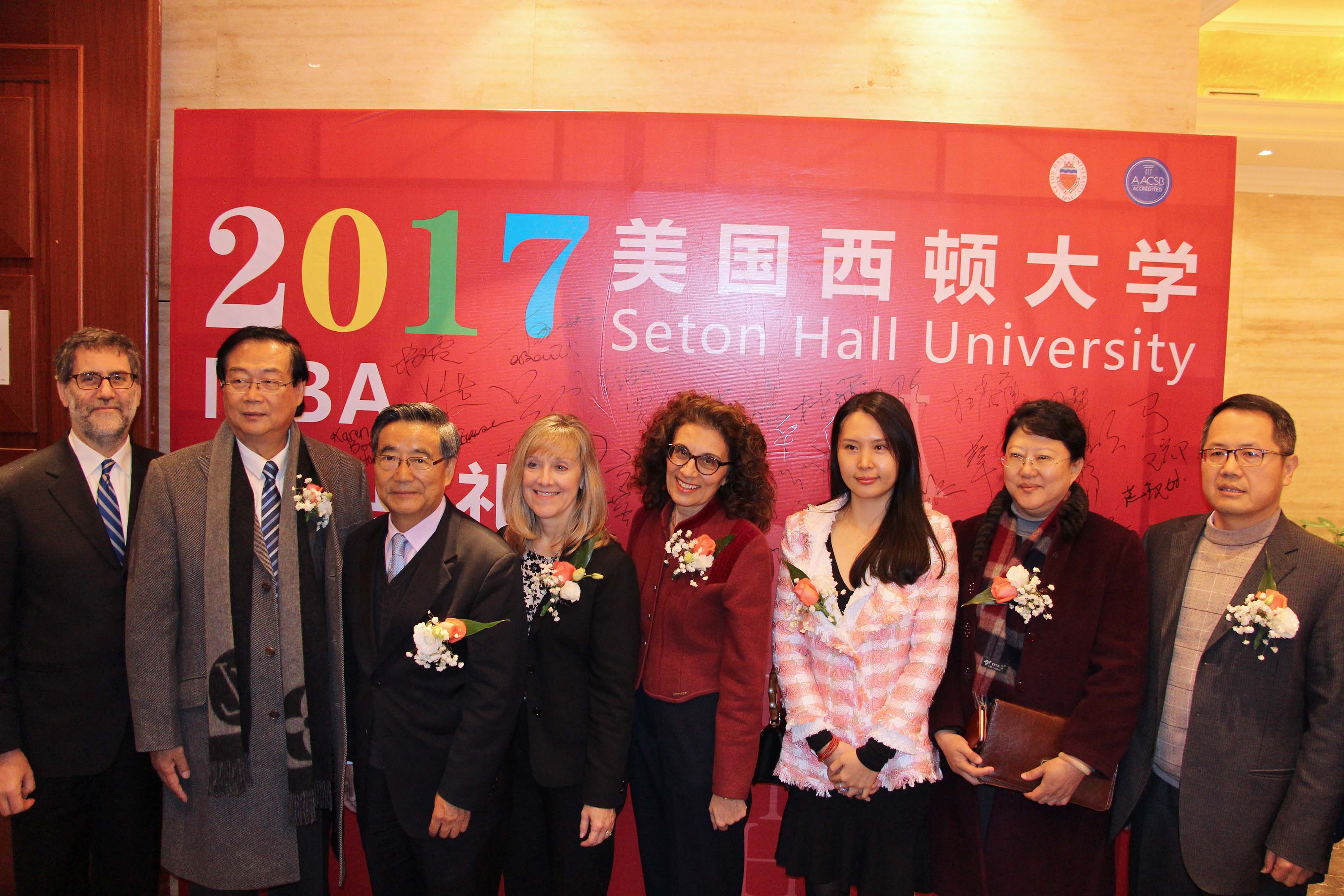 2017年11月18日,2017美國西頓大學(Seton Hall University)MBA上海秋季班開學典禮在上海隆重舉行。本次開學典禮由MBA招生網聯合美國西頓大學-斯德爾曼商學院舉辦,上海交通大學教育集團明源學院院長周俊儒先生主持。美國西頓大學(Seton Hall University)執行校長兼教務長Karen Boroff,斯德爾曼商學院院長Joyce Strawser,副院長尹尊聲,美國西頓大學MBA中國中心施隆光博士,美國西頓大學中國代表處劉品海副主任等校方領導、特聘教授謝邦昌及部分校友親臨現場。