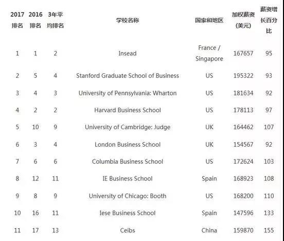 先來看幾張圖,這是金融時報(Financial Times)2017年全球商學院MBA排名!公布的指標包括畢業起薪,薪水漲幅,貨幣價值,職業發展,校友推薦等。