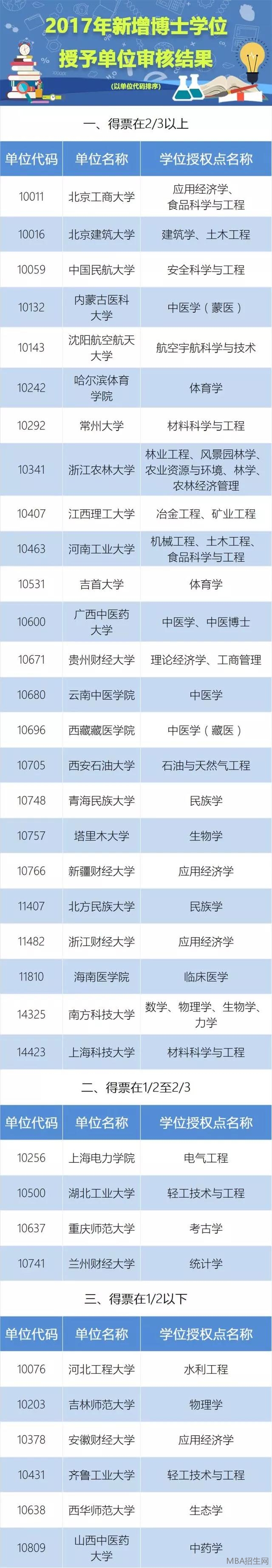 2017年新增博士、碩士學(xué)位授予單位及其授權(quán)點(diǎn)名單公布 文  /MBA招生網(wǎng)2018-05-18 13:34:37
