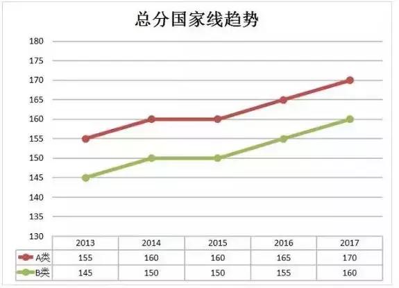 從2013年開始MBA聯(lián)考的國家線一路高歌猛進(jìn),從155分一路飆升至170分,這一路高升的分?jǐn)?shù)讓很多考生不免擔(dān)心,今年的管理類聯(lián)考的分?jǐn)?shù)線會不會又要再次升溫?畢竟今年的報(bào)考人數(shù)相對于去年來說報(bào)考人數(shù)又大幅增加,專業(yè)學(xué)位報(bào)考人數(shù)也開始逐漸增多。我們先看一下近五年國家線的趨勢,如下圖所示:
