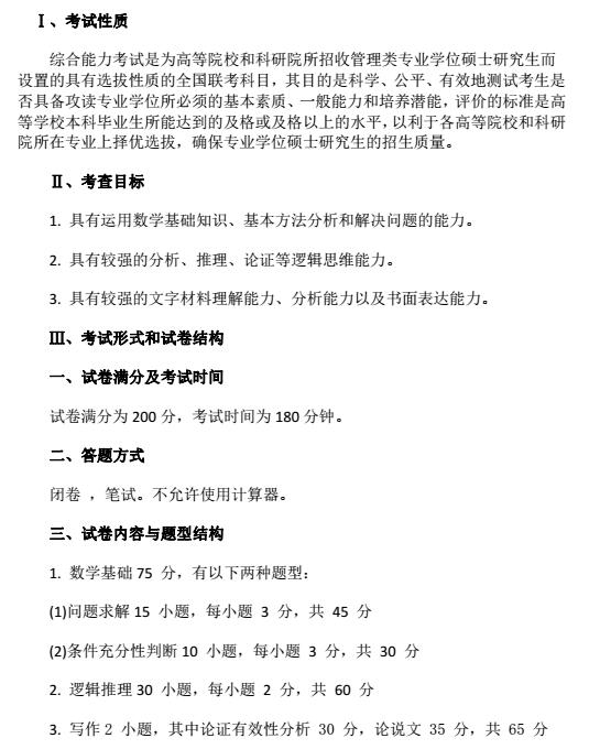 每年參加MBA聯(lián)考的考生都非常關注每年8、9月份發(fā)布的MBA考試大綱,針對馬上到來的2018年MBA考試,大綱已經公布了,同時也就意味著MBA聯(lián)考也要進入沖刺階段了。那么各位考生,我們就一起來一下最新的綜合能力考試大綱是怎樣的吧。