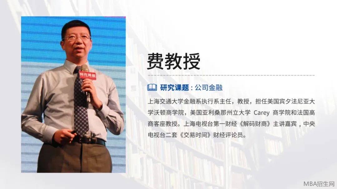 上海交通大學安泰經濟與管理學院EMBA課程教授,金融系副教授,創新創業EMBA項目創業導師,2006-2009年曾任上海交通大學安泰經濟與管理學院金融系執行副系主任。主要專業領域為公司金融。