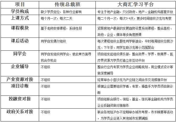 大商匯總裁沙龍:秉承“互動、互助、共享、共贏”的宗旨,通過舉辦小型私密聚會,為學員提供學習、交流、項目投資與合作、上下游產業資源整合、融資等深度合作交流平臺。與眾多業內優秀人士共謀發展、互助共贏!