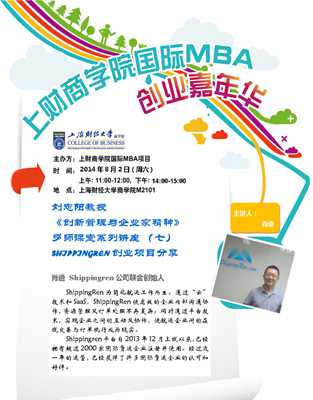 “上財商學院國際MBA創業嘉年華”誠摯邀請您在劉志陽教授的課堂與嘉賓一起分享創業新思潮。