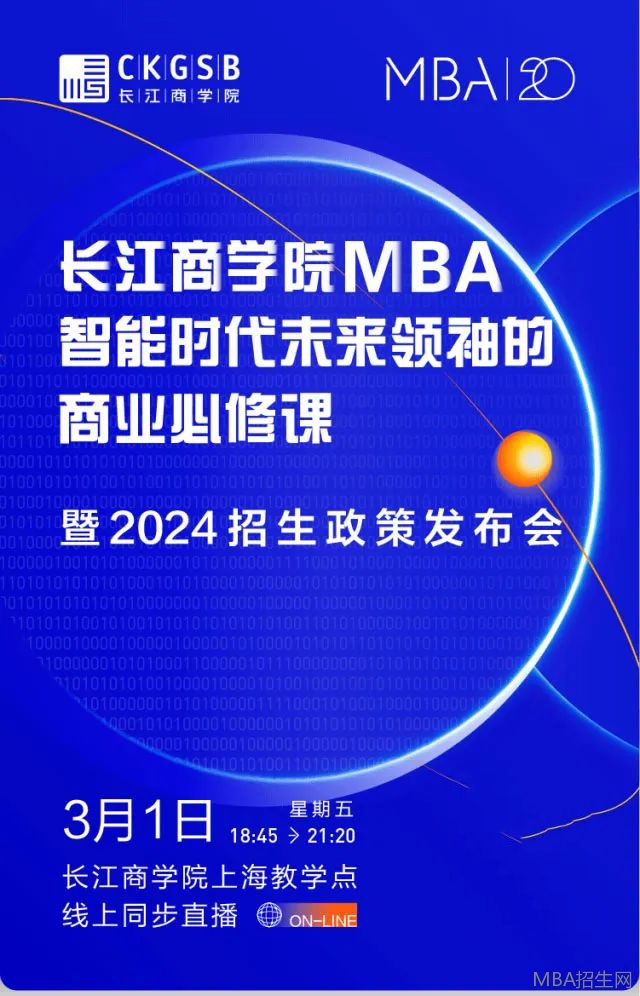 3月1日 重磅發布!長江商學院MBA公開課暨2024招生政策發布會
