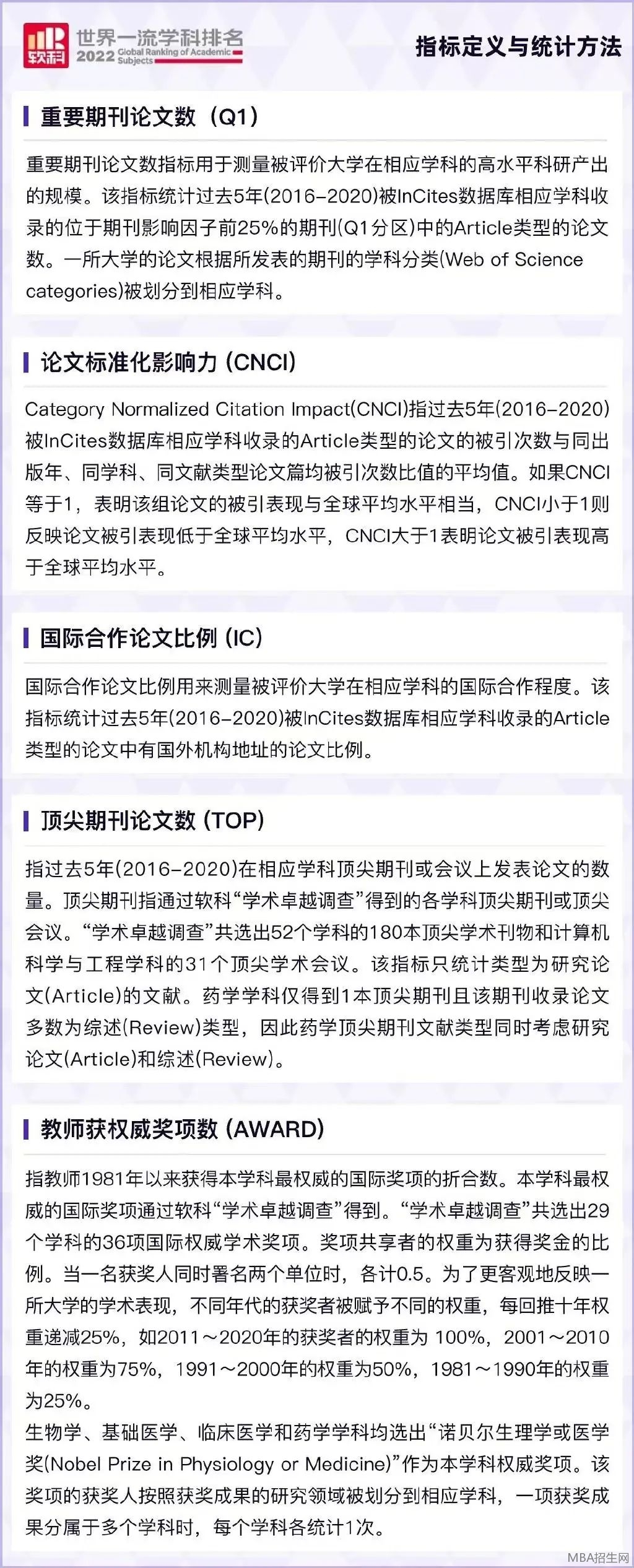 軟科《世界一流學(xué)科排名》根據(jù)一系列國際可比的客觀學(xué)術(shù)指標(biāo),按不同學(xué)科對世界各地高等教育機(jī)構(gòu)進(jìn)行衡量,具體指標(biāo)包含:重要期刊論文數(shù)(位于期刊前25%)