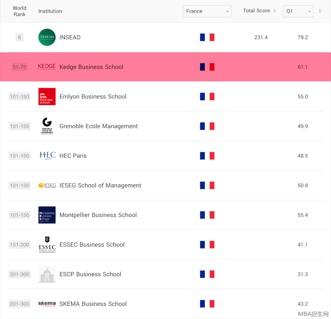 KEDGE首次進(jìn)入世界前75名!