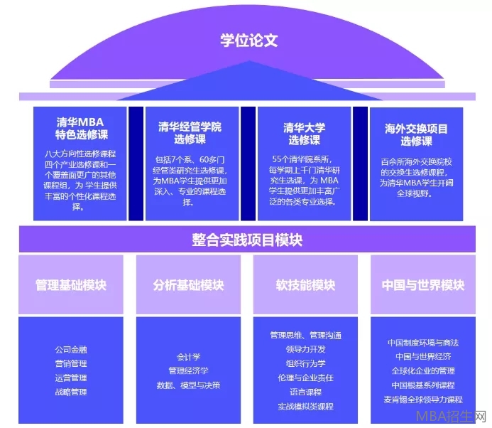 清華MBA新版課程體系由核心課、選修課和學(xué)位論文三個部分組成。核心課全部為通用性、基礎(chǔ)性課程,能夠?yàn)镸BA學(xué)生后續(xù)的學(xué)習(xí)打下堅(jiān)實(shí)基礎(chǔ)。在核心課后MBA學(xué)生可以根據(jù)個人的需要選修經(jīng)管學(xué)院、清華大學(xué)和海外院校的課程,進(jìn)行個性化的學(xué)習(xí)。在最后的學(xué)位論文階段,MBA學(xué)生可以結(jié)合自己的工作實(shí)際和學(xué)習(xí)興趣,完成綜合性、實(shí)踐性的學(xué)位論文,達(dá)到將在校所學(xué)融匯貫通、深入掌握的目的。