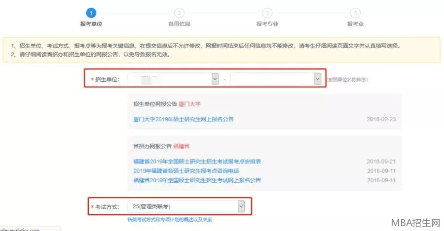 其中:“報考單位名稱”:所報學校;“報考院系所”選擇報考院系;“報考專業”選擇工商管理;"學習方式“選擇非全日制;”考試科目“選擇管理類聯考綜合能力英語二"