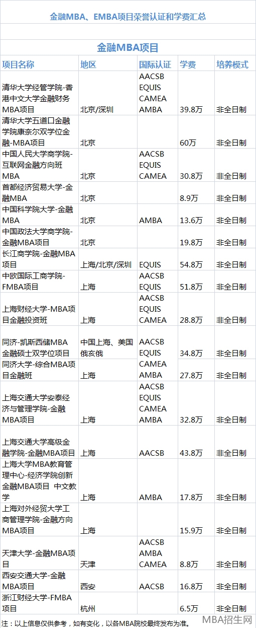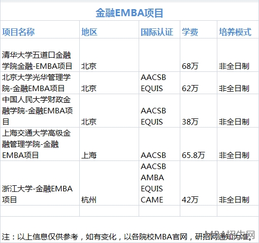 全國(guó)金融EMBA、MBA項(xiàng)目匯總: